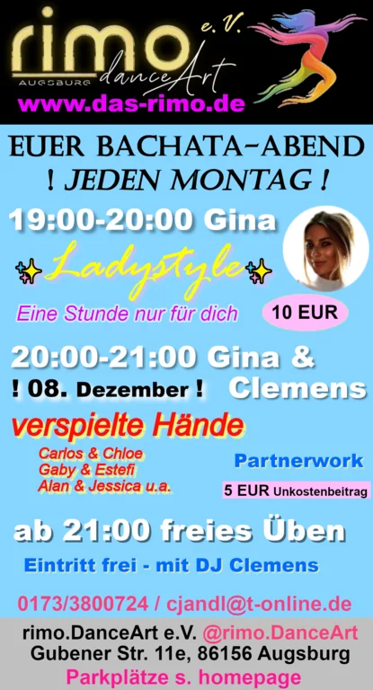 Ab 21:00 DJ Clemens spielt dabei für euch die passenden Bachata-Titel.