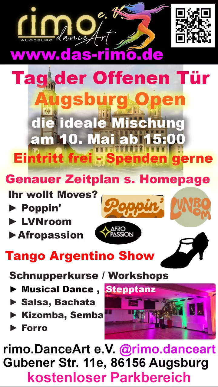 Der gemeinnützige Verein „rimo.DanceArt e.V.“ wurde Ende 2022 gegründet um Tanz, Kunst und Kultur in einer neuartigen Art zu verbinden. Unabhängige Räume, diverse Angebote und Support für Kleinkunst gibt es in dieser Art nur bei uns.