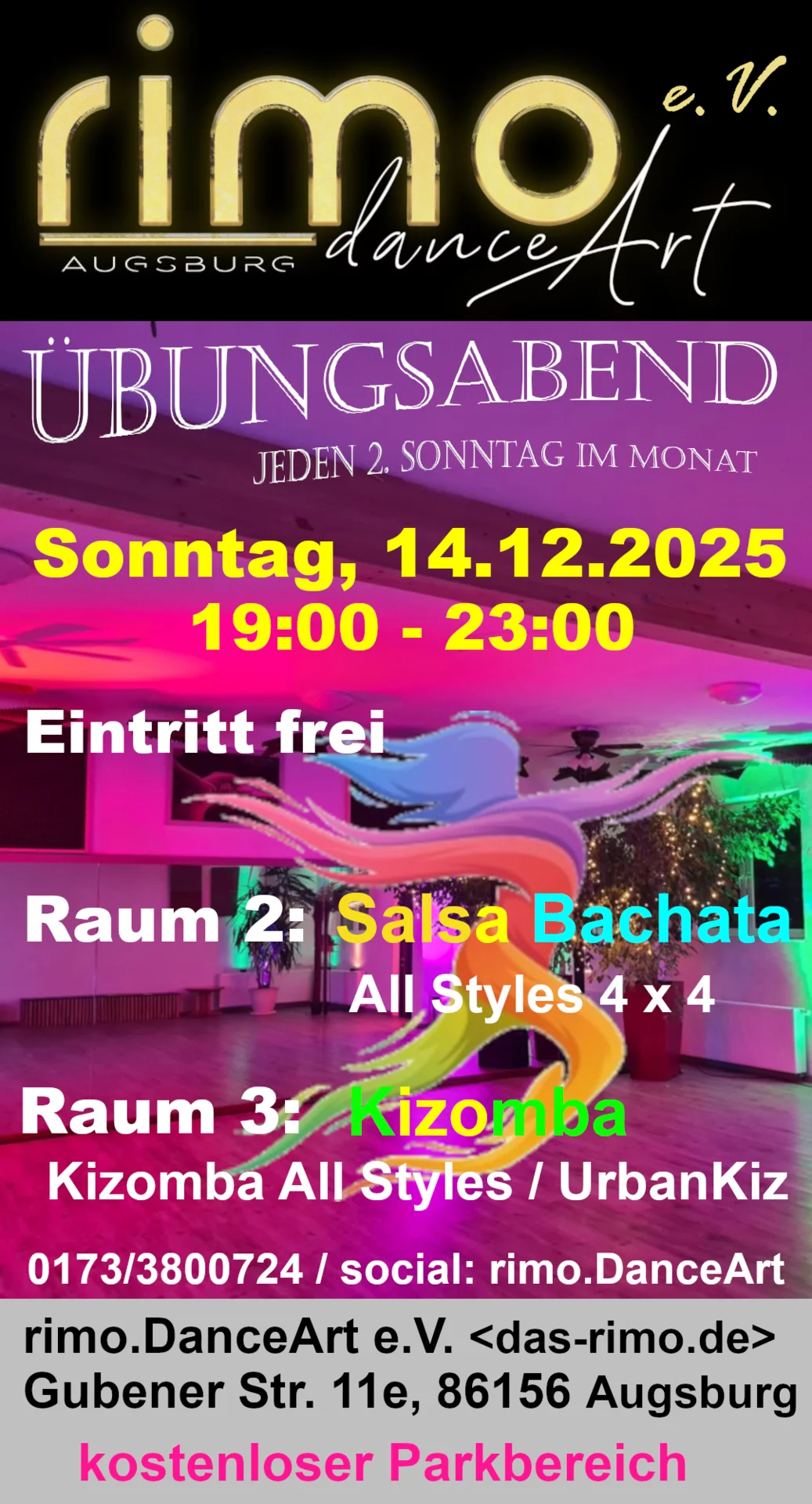 Dabei finden ab dem 13. Oktober 2025 immer Montags zuerst 2 Workshops und anschließend freie Übungsstunden statt - Eintritt frei.